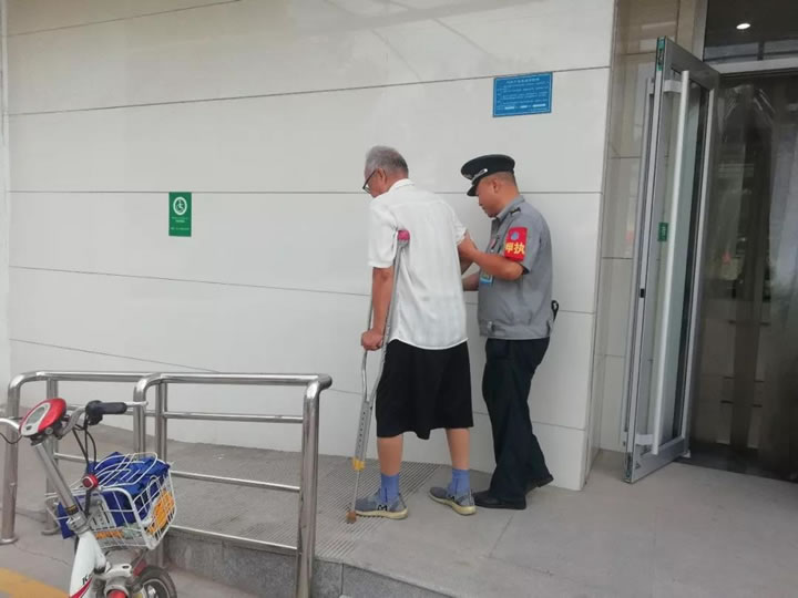 得安運營三部五大隊駐某單位保安員在執(zhí)勤時,發(fā)現(xiàn)一位坐著輪椅的老人來駐勤單位辦理業(yè)務(wù)。保安員馬上上前攙扶老人,做完常規(guī)的安檢后通過詢問得知老人所要辦理的業(yè)務(wù)需要到上樓辦理,保安員全程陪護著老人辦理完所有業(yè)務(wù),并護送老人到門口。隊員們的愛心和熱情得到了老人的表揚。